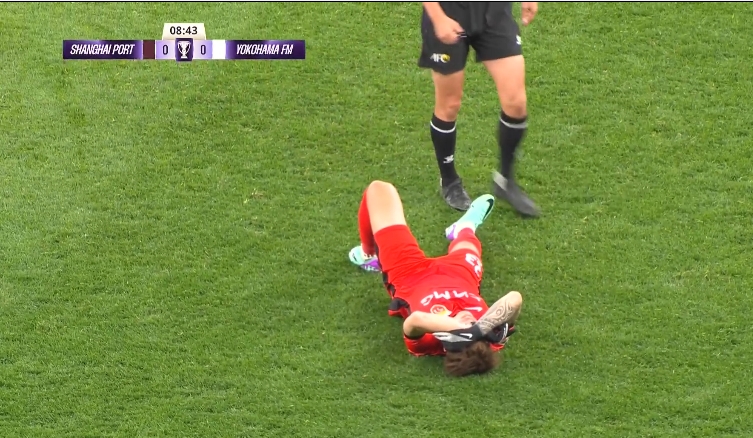 在简单治疗后,傅欢试图坚持比赛,但第9分钟再次倒地无法坚持被换下场,王振澳替补登场。
