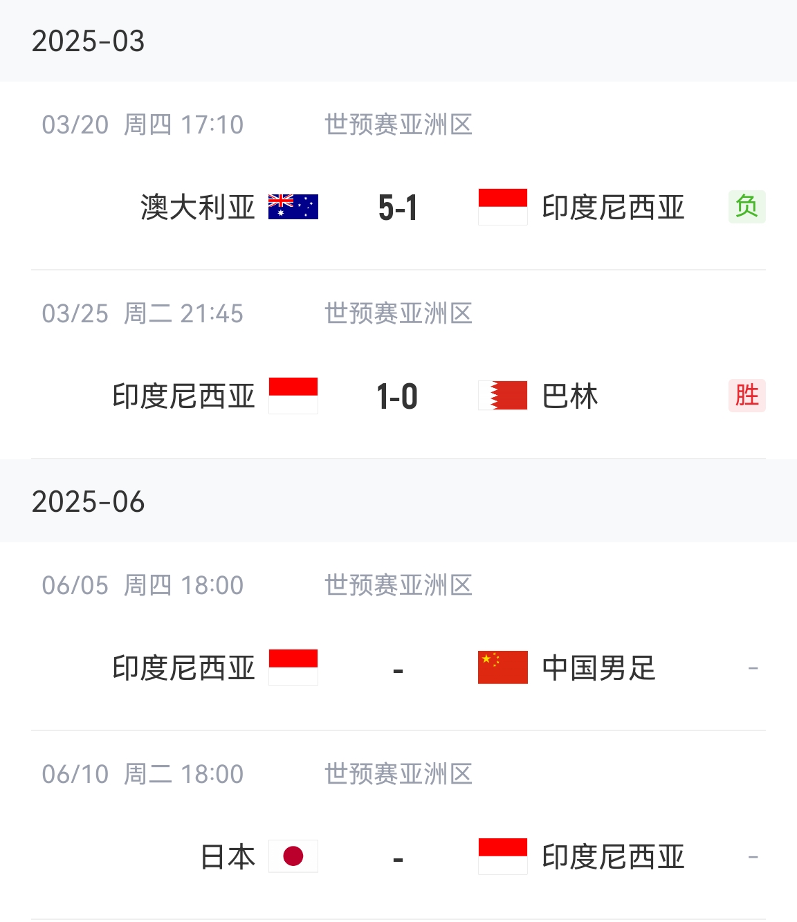 03月25日讯 印尼主场1-0力克巴林,8轮过后拿到9分,下一轮他们将主场迎战中国队。
