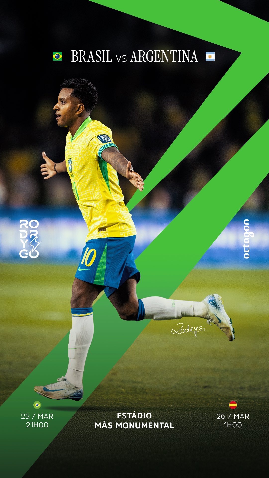 巴西前锋罗德里戈赛前更新个人社媒,写道:让我们与上帝同行。