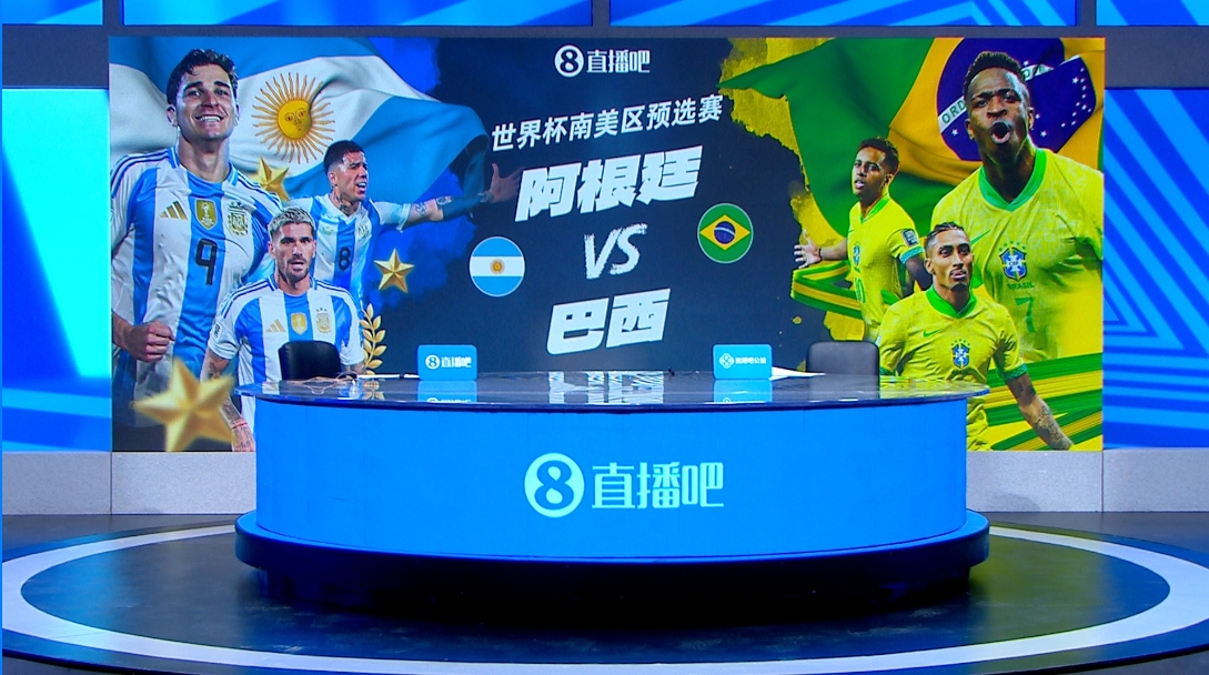 直播吧演播室准备就绪,静待南美德比!于鑫淼、王正坤解说