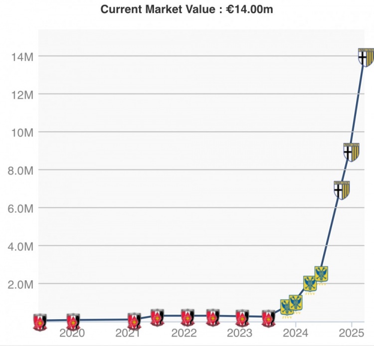 3月26日讯 德转市场近日更新了意甲联赛球员身价,其中效力于帕尔马的日本混血门将铃木彩艳身价较上期上涨500万欧,最新身价来到1400万欧。