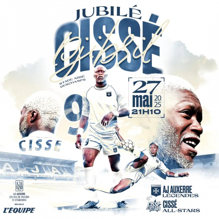 欧塞尔官网发布消息:“5月27日(21:10),吉布里尔-西塞将在阿贝-德尚球场举办他的告别赛!这将是一场特别的盛会,届时将汇聚欧塞尔足球俱乐部(AJA)的昔日传奇人物以及法国和国际足坛的众多大牌球星。”