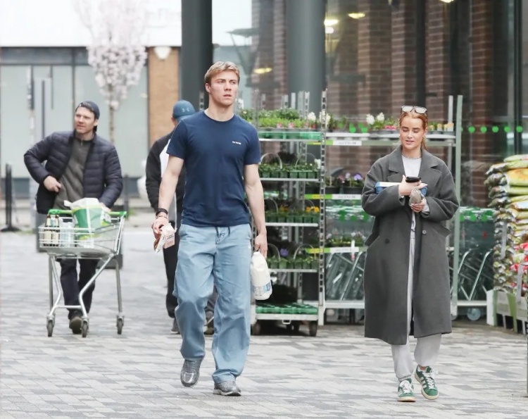 太阳报:曼联前锋霍伊伦近日与女友现身超市购买生活用品