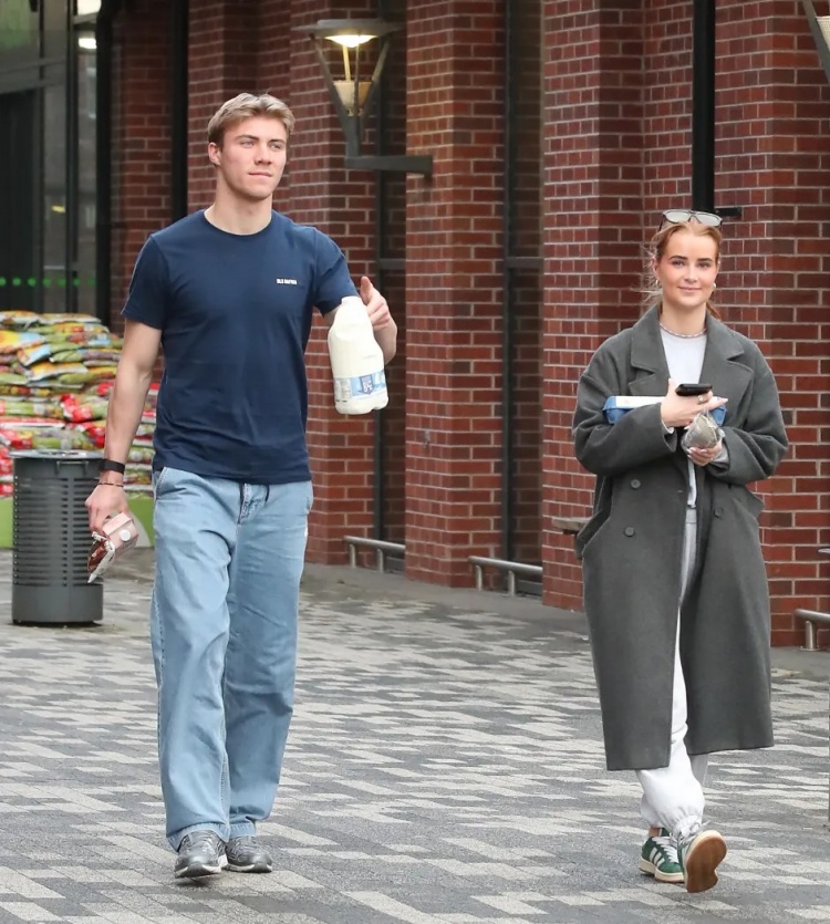 在结束与丹麦国家队的国际比赛任务后,曼联前锋霍伊伦与女友劳拉罗德一同前往当地超市采购牛奶等生活必需品。