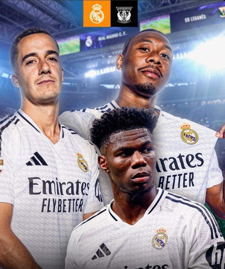 海报中琼阿梅尼、巴斯克斯以及阿拉巴出镜。在目前的西甲积分榜上,皇马以60分位列次席,落后榜首的巴萨3分,本场面对身处降级区的对手不容有失。