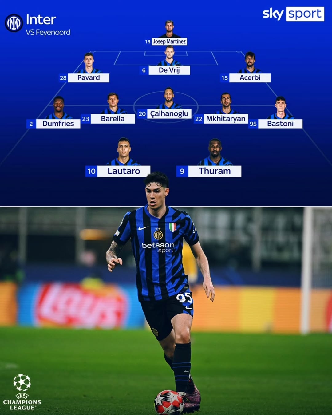 - 天空预测国米vs费耶诺德首发:帕瓦尔出战,巴斯托尼顶替迪马尔科