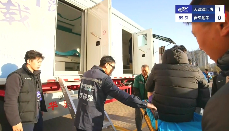 比赛第75分钟,萨尔瓦多被林创益飞铲后伤退,转播镜头直接切到场外医疗车,萨尔瓦多接受CT检查。
