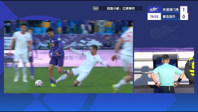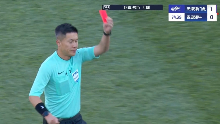 比赛第71分钟,林创益亮鞋底飞铲萨尔瓦多支撑腿,裁判先是出示黄牌,后经VAR改判将其直红罚下,海牛仅剩9人应战。此前,在上半场第42分钟,金洋洋已经因铲球犯规被直红罚下。