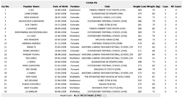 亚足联官方公布了2025年沙特阿拉伯U17亚洲杯各队名单。赛事将于4月3日开幕。