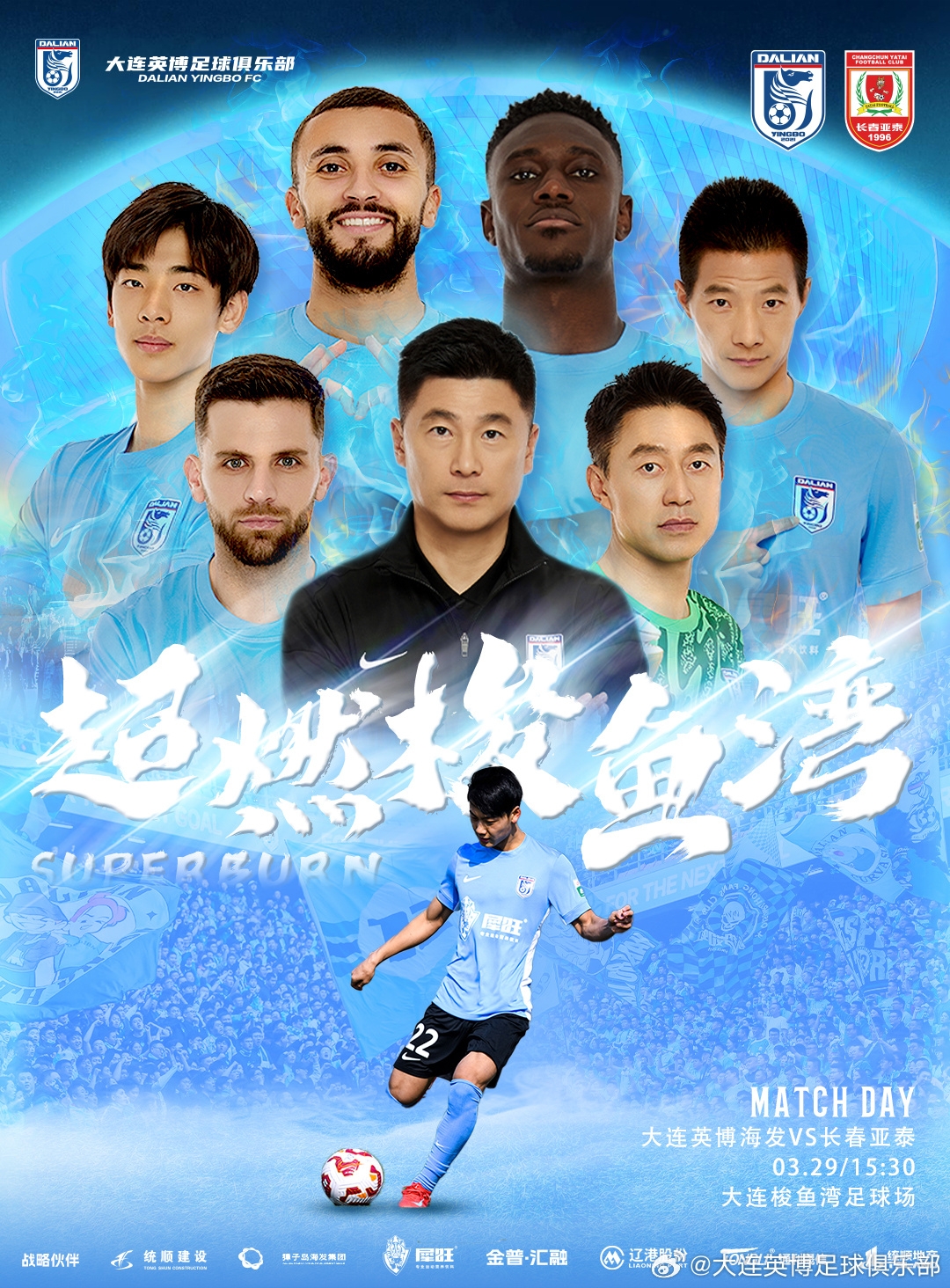 大连英博替补:26-黄子豪、5-晋鹏翔、8-赵学斌、18-刘逸、33-曹海清、22-毛伟杰、23-黄山、28-费煜、29-孙铂、9-闫鹏、15-刘祝润、39-阎相闯