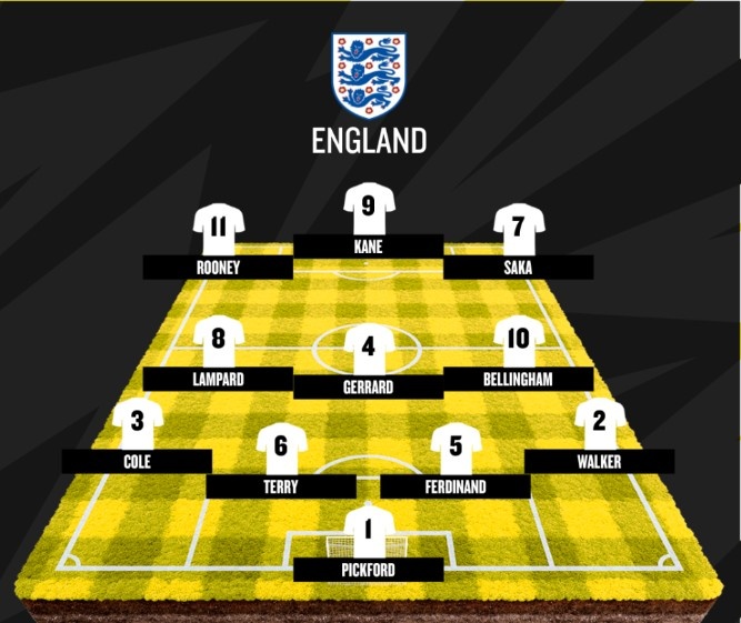 以下为阿邦拉霍选出的英格兰队史最佳阵: