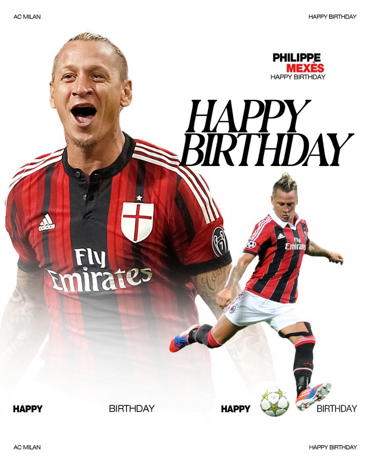 3月30日讯 今天是前法国中卫梅克斯的43岁生日,老东家米兰为他送上祝福。
