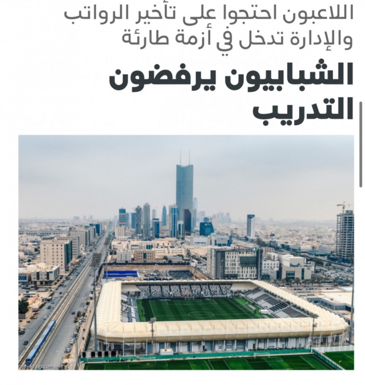 目前利雅得青年人俱乐部已经拖欠薪水3个月,原本俱乐部管理层承诺本周一支付欠薪,但球员们已经来到俱乐部总部并拒绝训练,因为他们对于管理层未能履行承诺而感到愤怒。