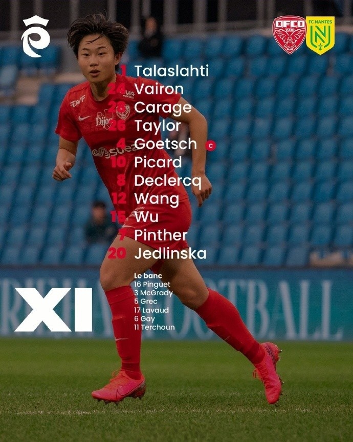 法甲第19轮第戎女足主场3-0战胜南特女足,吴澄舒、王妍雯首发出场,第17分钟,吴澄舒接队友左路传中,头球破门,首开纪录,连续两场有进球入账。上轮联赛第戎客场2-0战胜勒阿弗尔女足,吴澄舒也斩获一粒进球。王妍雯打满90分钟,伤停补时阶段被队友换下。