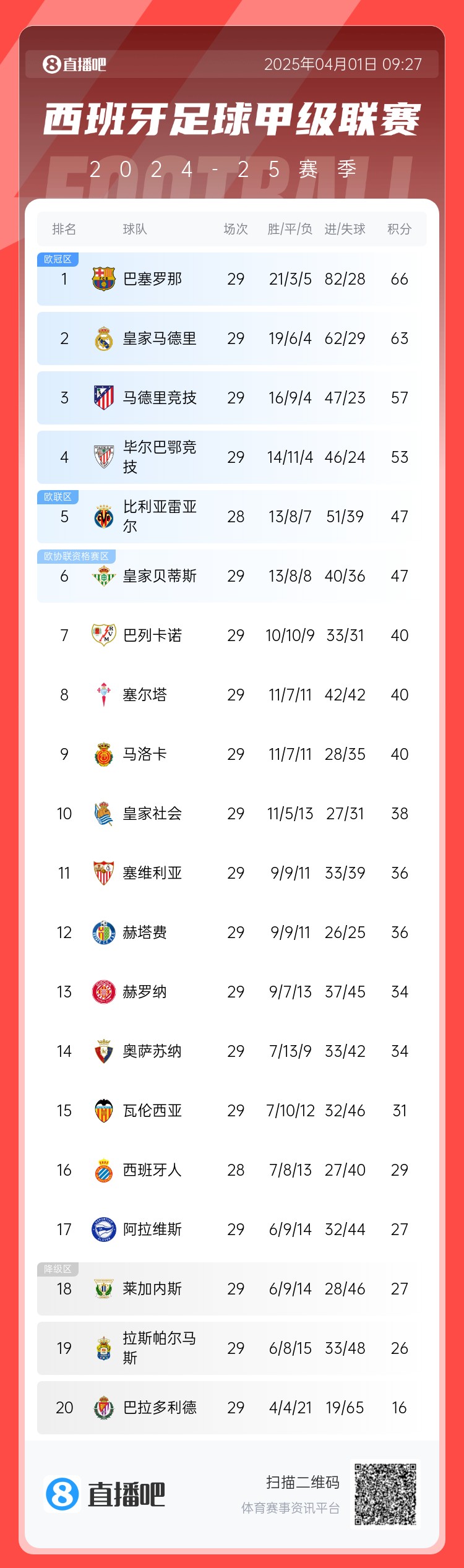 04月01日讯 西甲第29轮,贝蒂斯2-1击败塞维利亚,稳坐西甲第6的位置,甚至存在冲击第4的希望。
