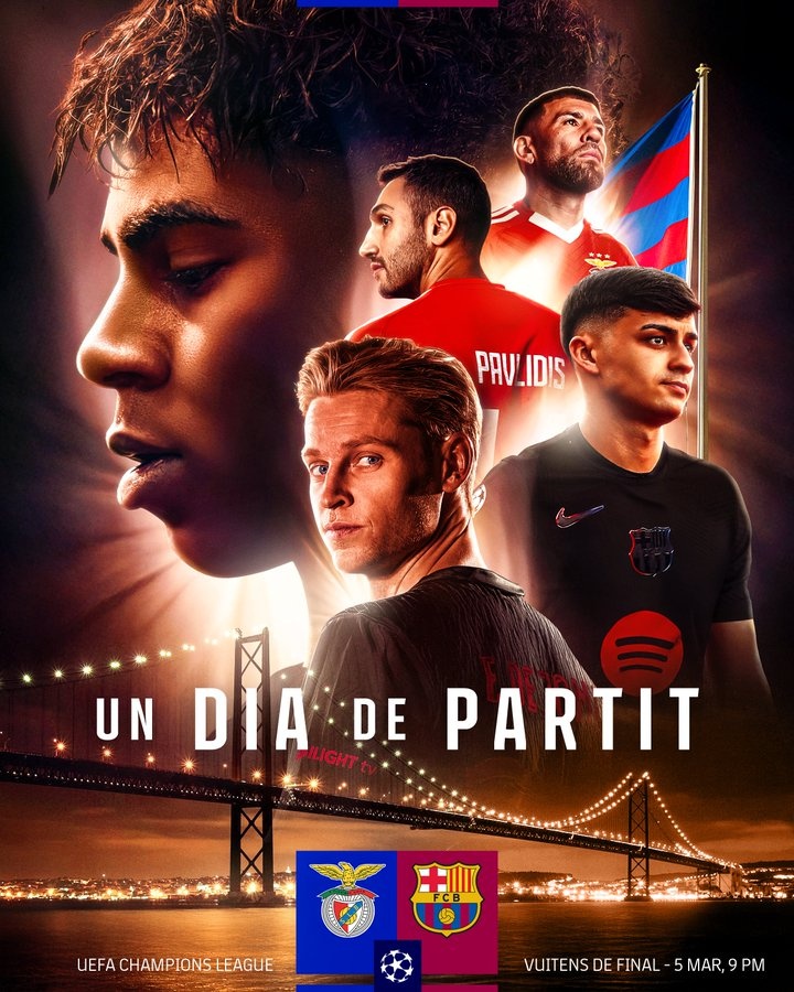 巴萨晒海报预热与本菲卡比赛,亚马尔、德容、佩德里出镜