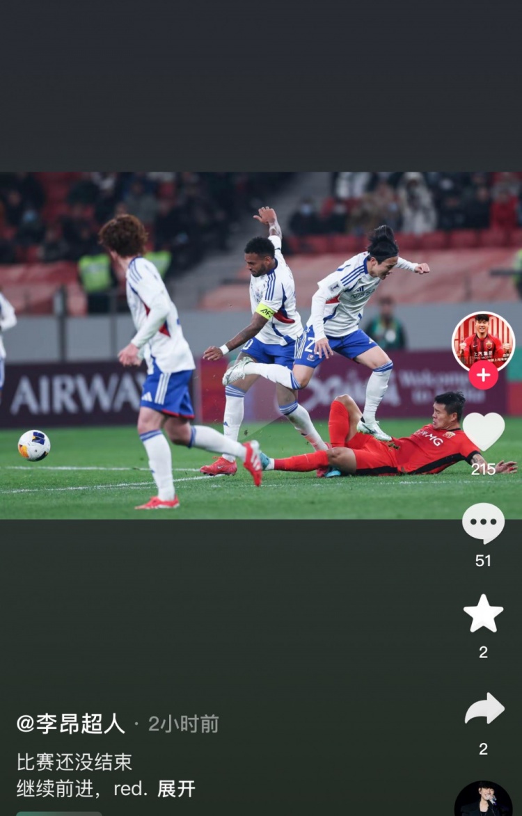 李昂社媒鼓励海港队:比赛还没结束,继续前进