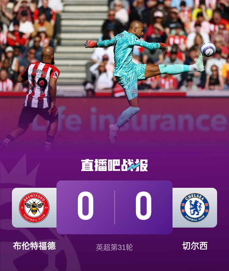 切尔西0-0布伦特福德无缘连胜仍第四 蓝军21脚射门弗莱肯屡次扑救