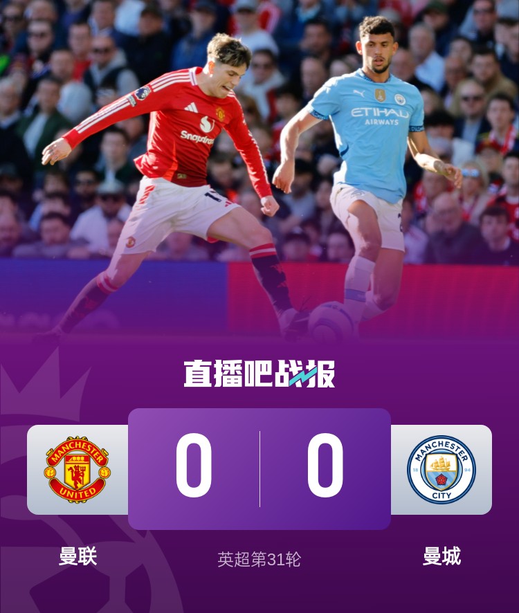 曼联0-0曼城近4场曼市德比不败 蓝月亮无缘连胜仍距前四1分