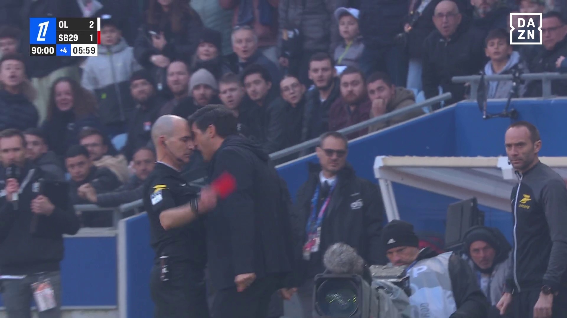 3月6日讯 法甲第24轮,里昂2-1战胜布雷斯特,比赛中里昂主教练丰塞卡被出示直红罚下,在被罚下后,他非常愤怒的与当值主裁米洛特顶牛,并且怒喷裁判。