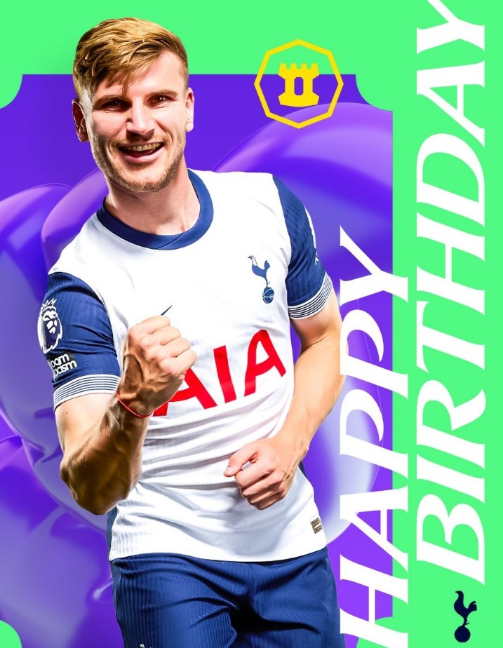 - 维尔纳迎29岁生日,热刺官方晒海报送上生日祝福