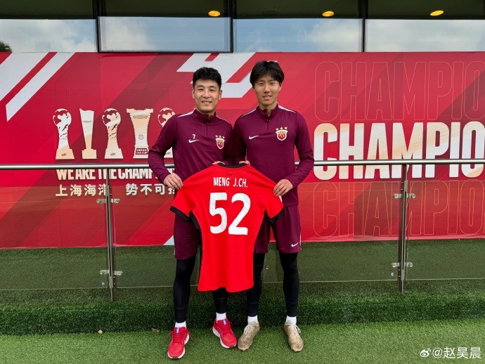 赵昊晨透露,在海港今天的训练开始前,队长武磊代表全队向孟敬朝送上鼓励及祝贺,随后两人一起持52号球衣合影、留念。