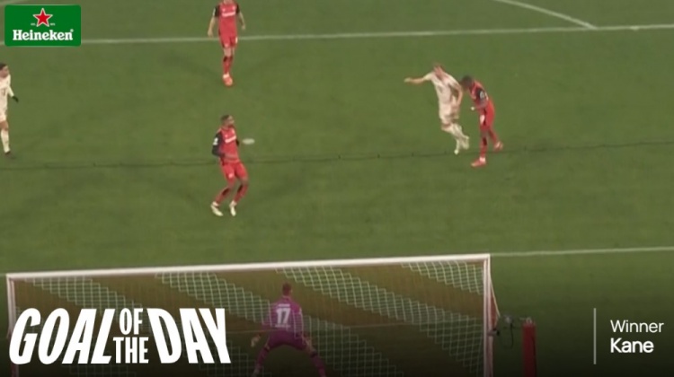 官方:凯恩vs勒沃库森头槌破门当选欧冠16强战首回合次日最佳进球