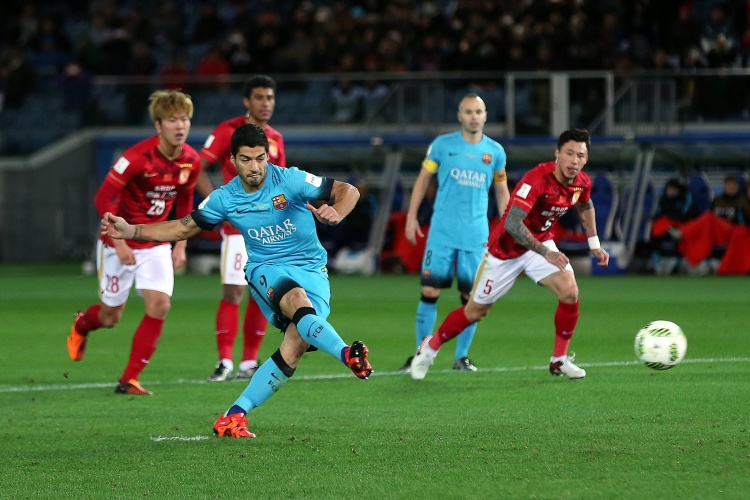 2015年世俱杯半决赛,苏亚雷斯帽子戏法,巴萨3-0广州恒大。