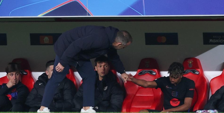 3月7日讯 最近一场欧冠,巴萨1-0击败本菲卡。比赛第56分钟,亚马尔被弗里克换下。《每日体育报》报道,亚马尔被换下后感到沮丧,弗里克则前去跟球员交谈并鼓励。
