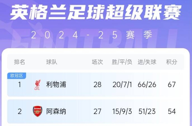 英超第27轮,阿森纳客场0-0诺丁汉森林,利物浦2-0纽卡。阿森纳目前少赛一场落后利物浦13分,夺冠希望渺茫。