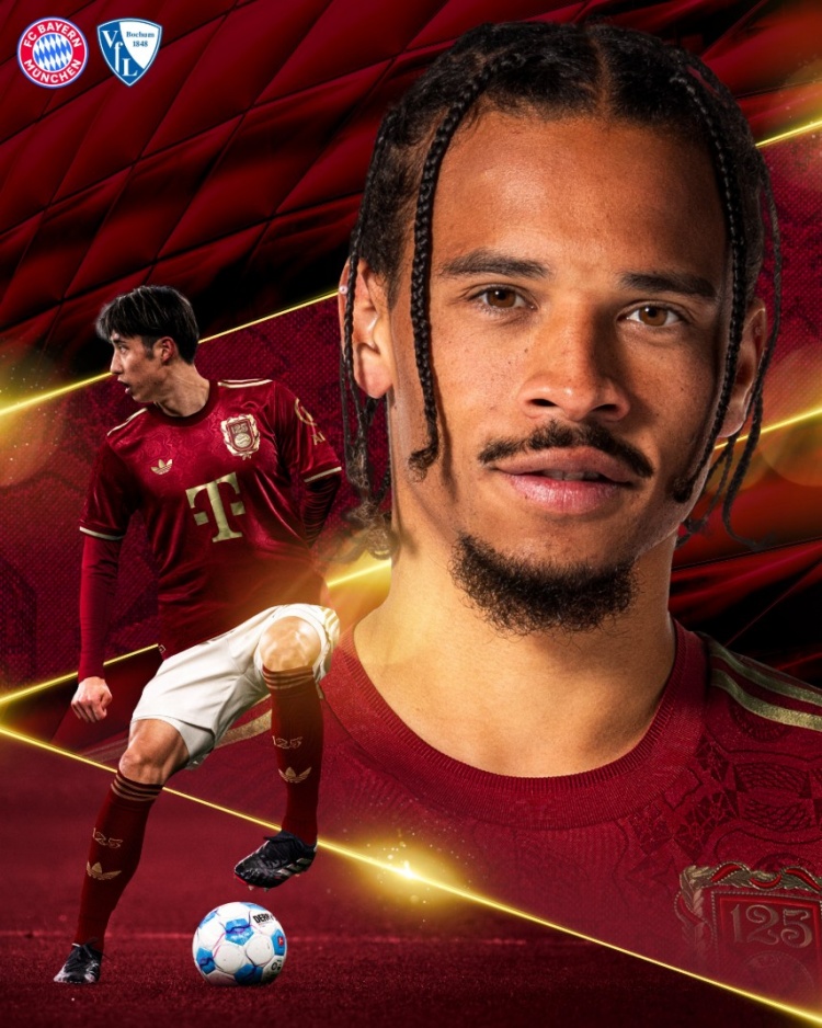 海报左上角为对阵双方队徽,出镜球员为萨内和伊藤洋辉。目前,拜仁24战积61分,以8分优势领跑积分榜;波鸿24战积17分,排名第16位。