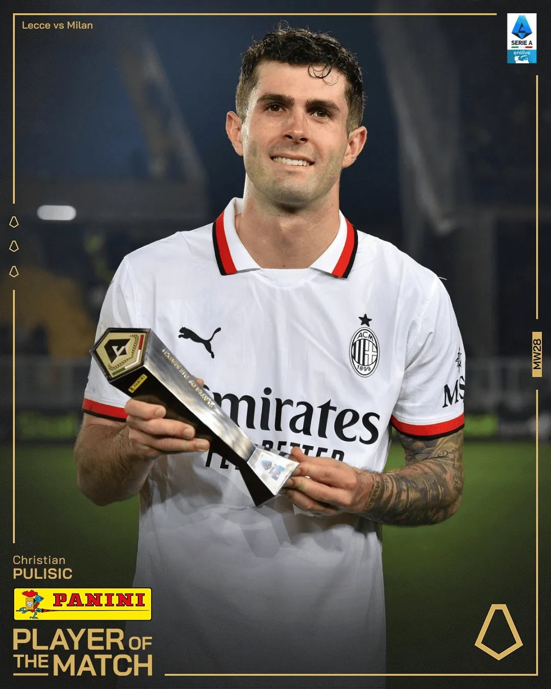 - 美国队长!官方:普利西奇当选AC米兰vs莱切全场最佳球员