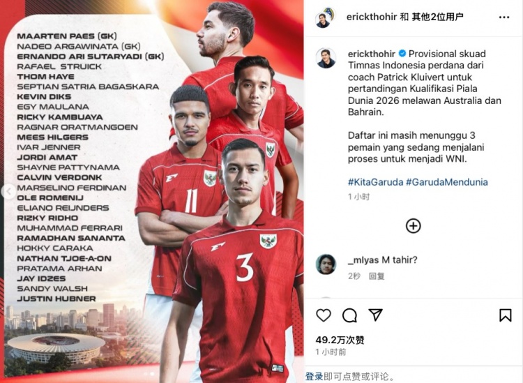 印尼大名单:迪克斯、希尔格斯等归化球员入选,3月份归化暂无缘