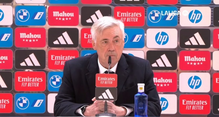 安切洛蒂:“贝林厄姆回归时状态良好。库尔图瓦会为周三比赛及时恢复。我非常喜欢球队上半场的表现,我们本可以3-0领先。下半场水准有所下降。”