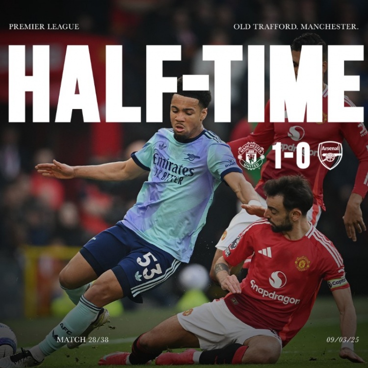 3月10日讯 本轮英超焦点战,曼联在主场上半场1-0领先阿森纳。