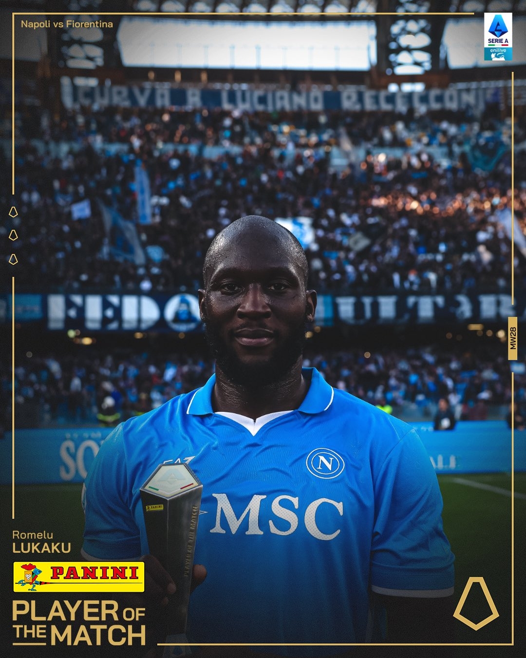 传射建功!意甲官方:卢卡库当选那不勒斯2-1佛罗伦萨全场最佳