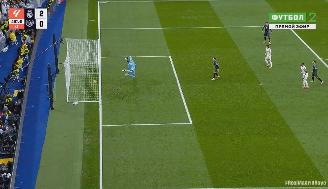 03月10日讯 皇马vs巴列卡诺上半场最后阶段,巴列卡诺爆射横梁下沿弹入球网,VAR判球进!皇马2-1巴列卡诺。