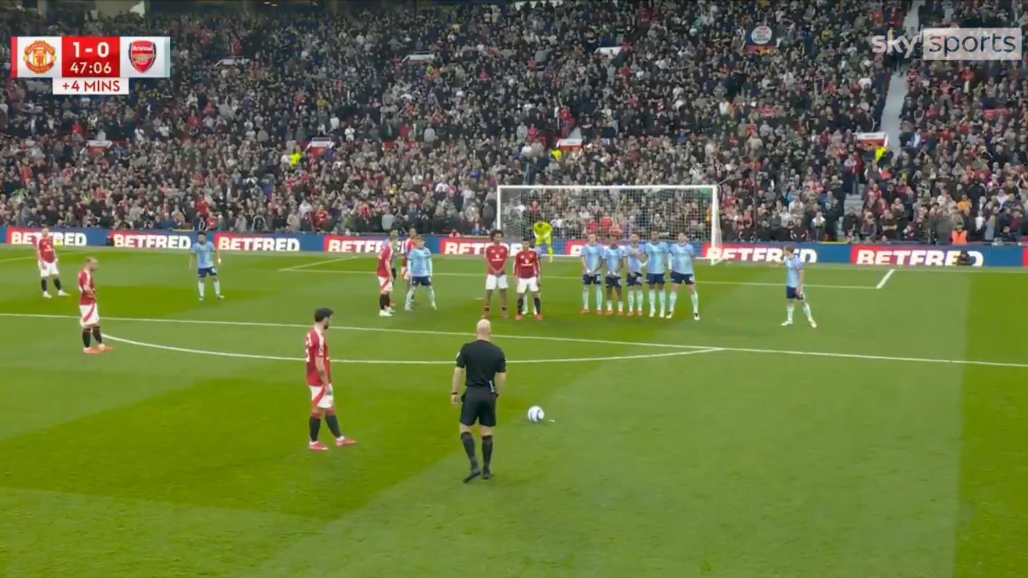 不少评论员和球迷都指出,B费主罚任意球时阿森纳的人墙看来似乎距离过远。