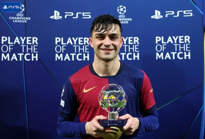 3月12日讯 欧冠1/8决赛次回合,巴萨3-1总比分4-1淘汰本菲卡,进入8强。赛后,佩德里当选全场最佳球员。