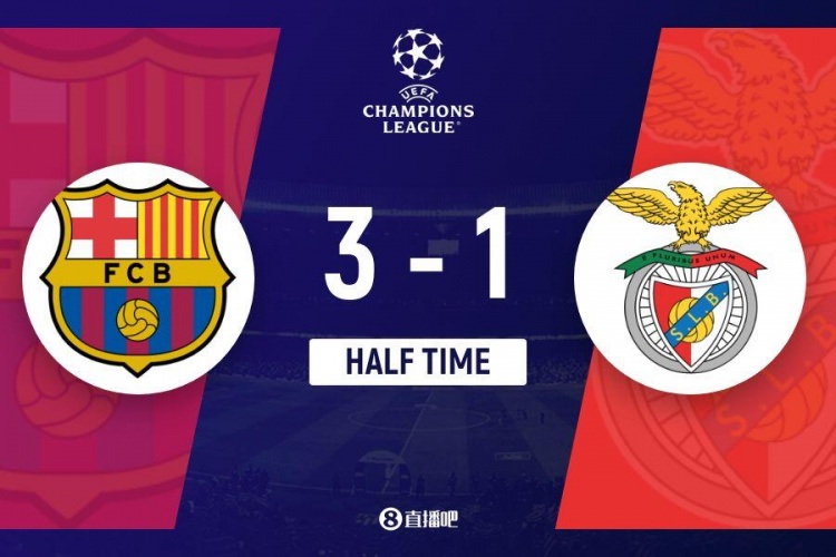 半场-巴萨3-1本菲卡总比分4-1领先 亚马尔传射拉菲尼亚双响