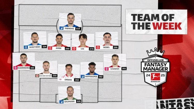 3月12日讯 德甲第25轮联赛已经完赛,德甲官方也评出了本轮联赛最佳阵容,美因茨和霍芬海姆各3将在列。