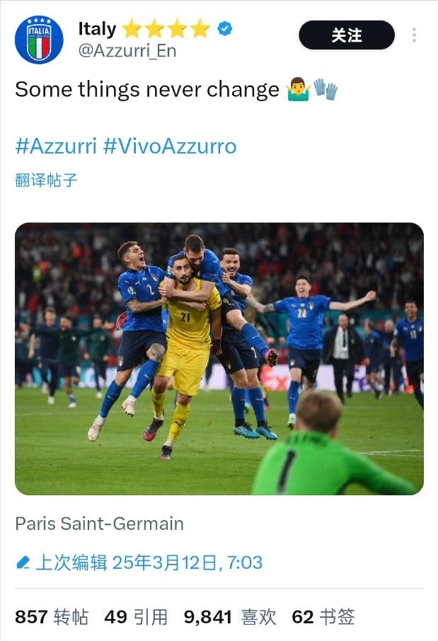 - 揭伤疤!意大利官推晒多纳鲁马欧洲杯决胜瞬间:有些事永不会改变