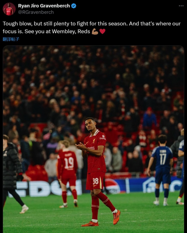 赫拉芬贝赫晒出自己的比赛照,并表示:“沉重的打击,但本赛季仍然有很多值得我们奋战。我们也将专注于此。温布利再见,红军球迷们!”