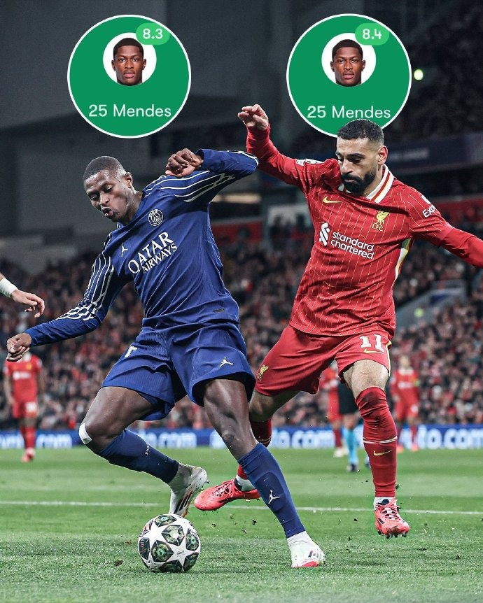 面对萨拉赫和路易斯-迪亚斯,奥斯曼-登贝莱&巴尔科拉强势抢镜,维蒂尼亚领衔的巴黎中场在和“迈巴赫”组合的对抗中同样不落下风。本场比赛,维蒂尼亚以93%的传球成功率刷出111次传球,成为了莫塔之后又一位在欧冠淘汰赛两回合较量中均完成传球次数破百的巴黎球员。另一位葡萄牙球员若昂-内维斯的传球成功率同样超过90%,法比安-鲁伊斯在90分钟的出场时间内赢得6次对抗和4次成功抢断。