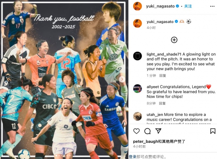 3月4日讯 37岁前日本女足国脚永里优季今日通过社媒宣布自己将正式退役的消息。她晒出了自己效力过的俱乐部球衣照和女足日本国家队球衣照的海报,并配文写道:“2002-2025,谢谢你,足球。”