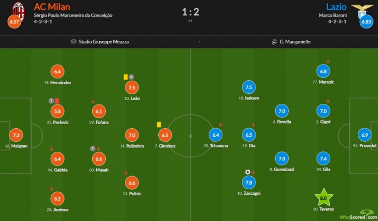 一组数据可很好的证明这个问题:普利西奇在来到2月后,个人比赛评分过7.5的只有一次(2-0恩波利);赖恩德斯在近8场比赛中的威胁相比过去小了很多,只收获了1个进球(1-2都灵);希门尼斯虽然数据表现上看起来还算不错,可是赛后评分只有6.9的均分,且多项数据比荷甲时有了下滑,这也是不争的事实。