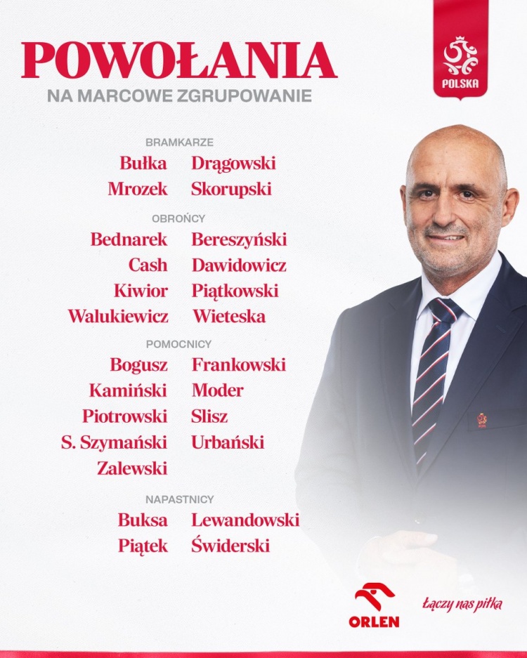 3月14日讯 波兰最新一期国家队名单公布,莱万多夫斯基领衔,扎莱夫斯基、基维奥尔、皮亚特克在列。