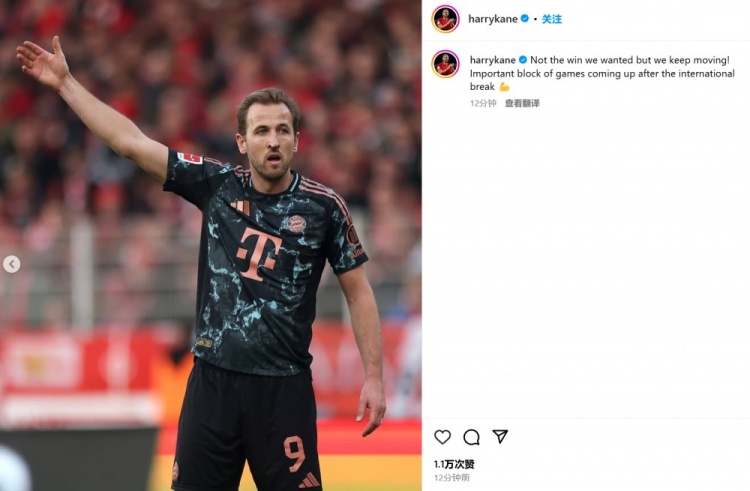 凯恩也在赛后通过社媒晒出比赛照,并表示:“没有取得我们想要的胜利,但我们会继续前进。在国家队比赛周之后,还会有更重量级的比赛等着我们????”。