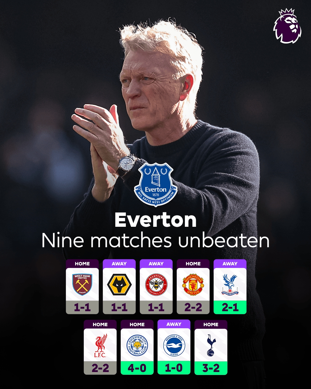 - 下赛季大干一场!莫耶斯率埃弗顿联赛9场不败,领先降级区17分