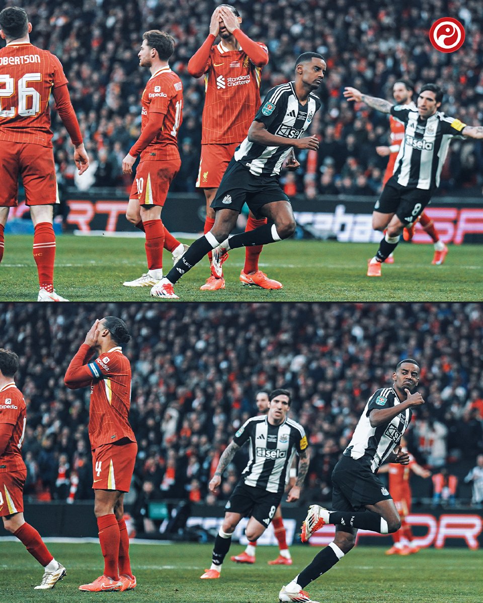 真利物浦克星!伊萨克进球后,范迪克捂脸